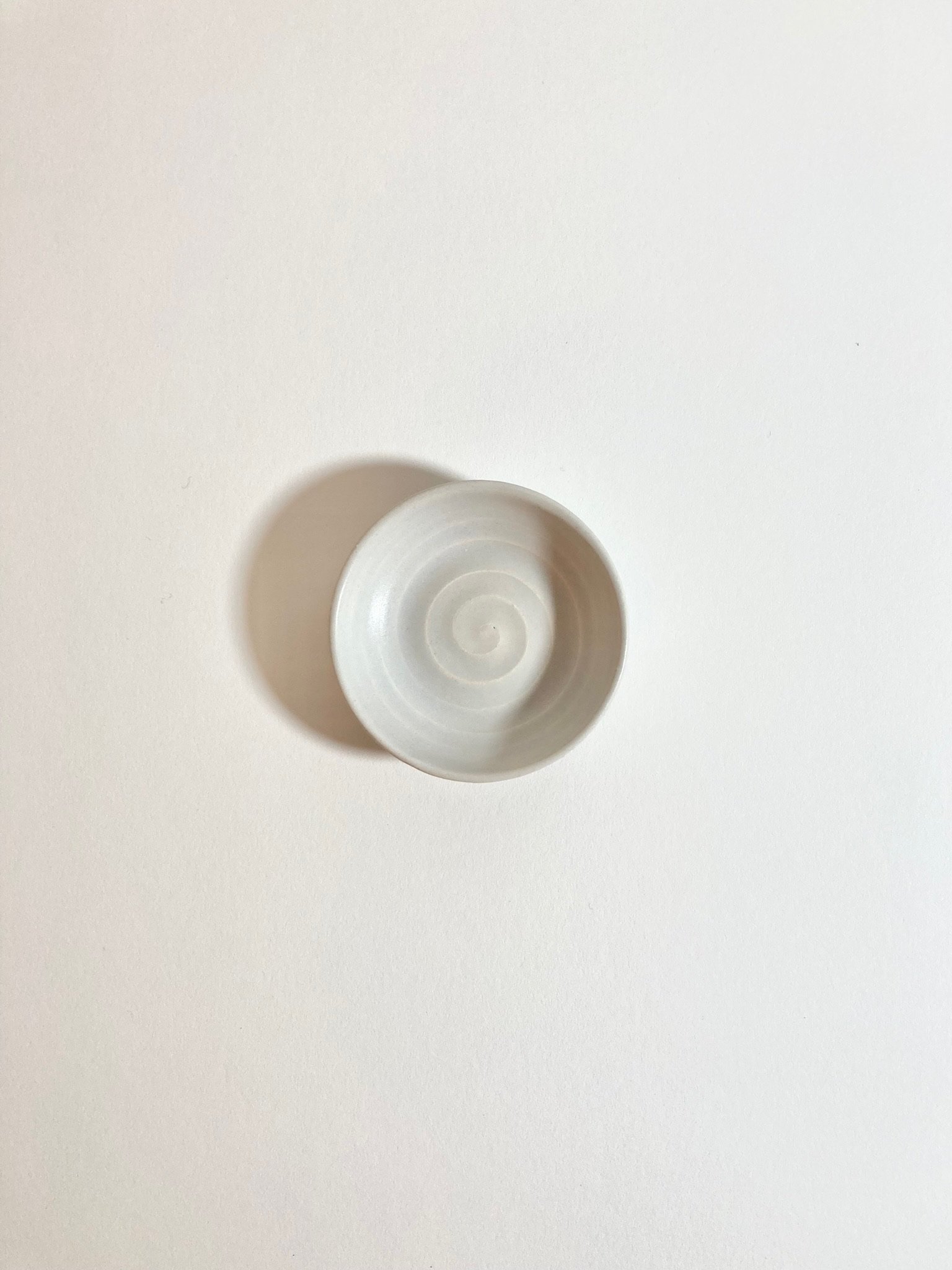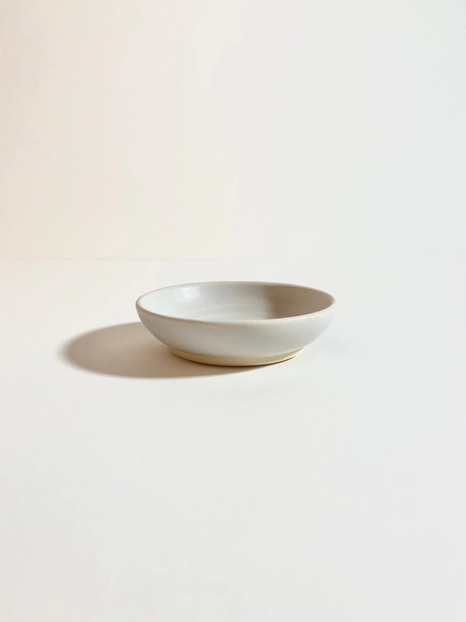 Small dish perfect for holding jewelry or steeped tea bags. Beautiful soft, satin finish.