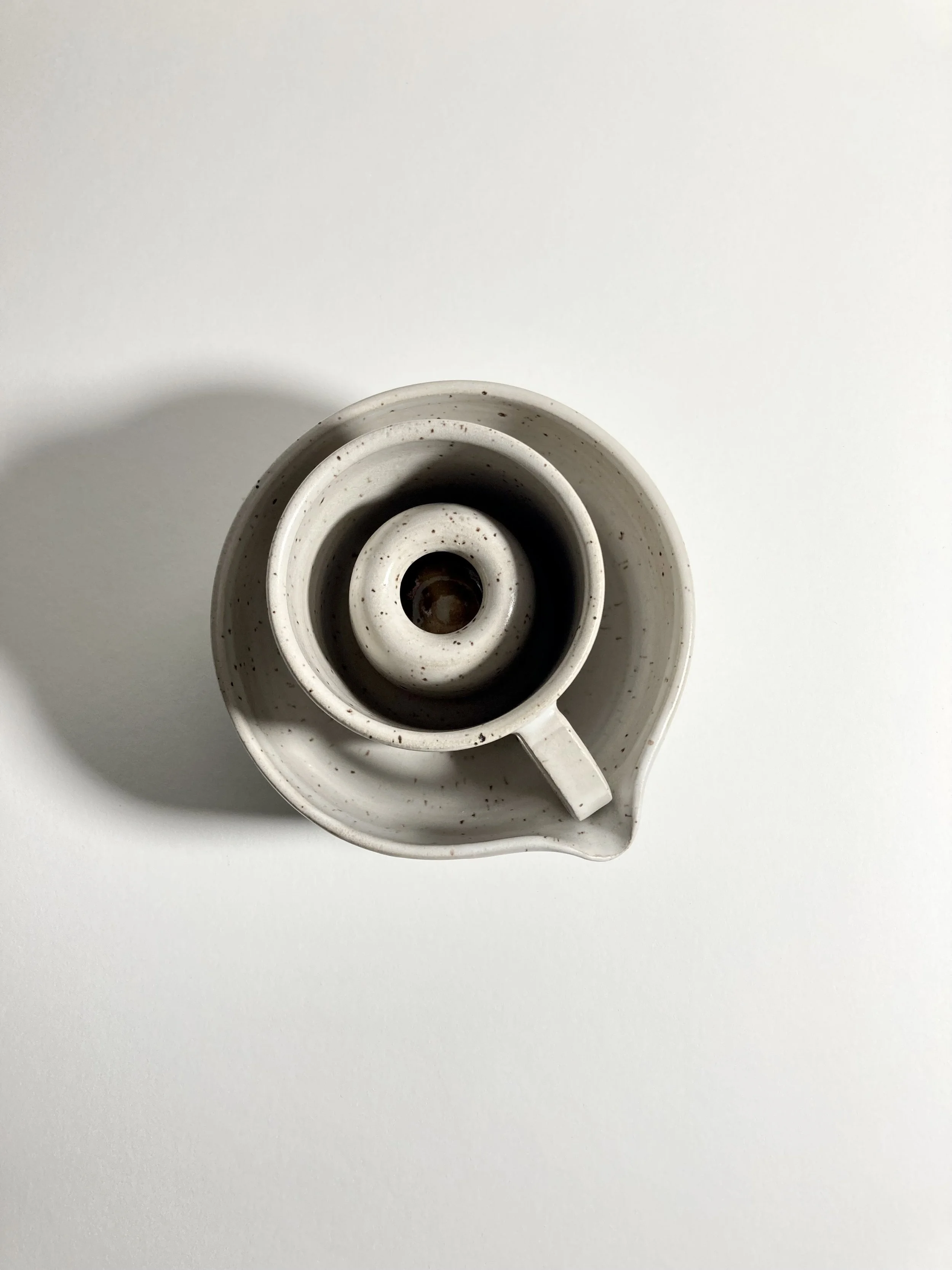 Though it can hold more than just matcha, this cup with its satin matte white glaze over speckled clay, was made to partner with the matcha bowl and whisk stand, making a perfectly beautiful set to enjoy or give as a gift. Can be purchased separately or as part of the set. Stand, bowl and cup #2 make a good set together!