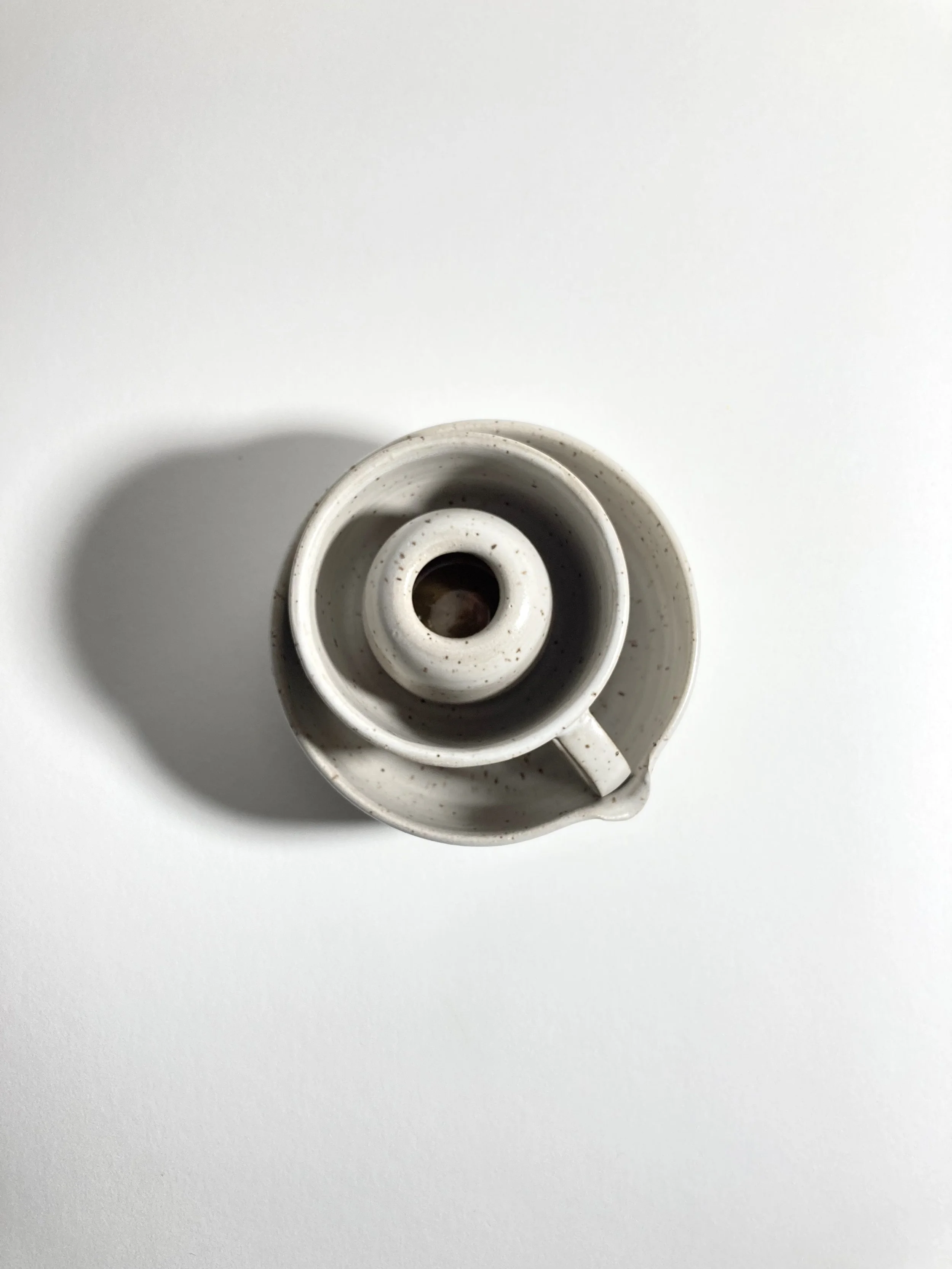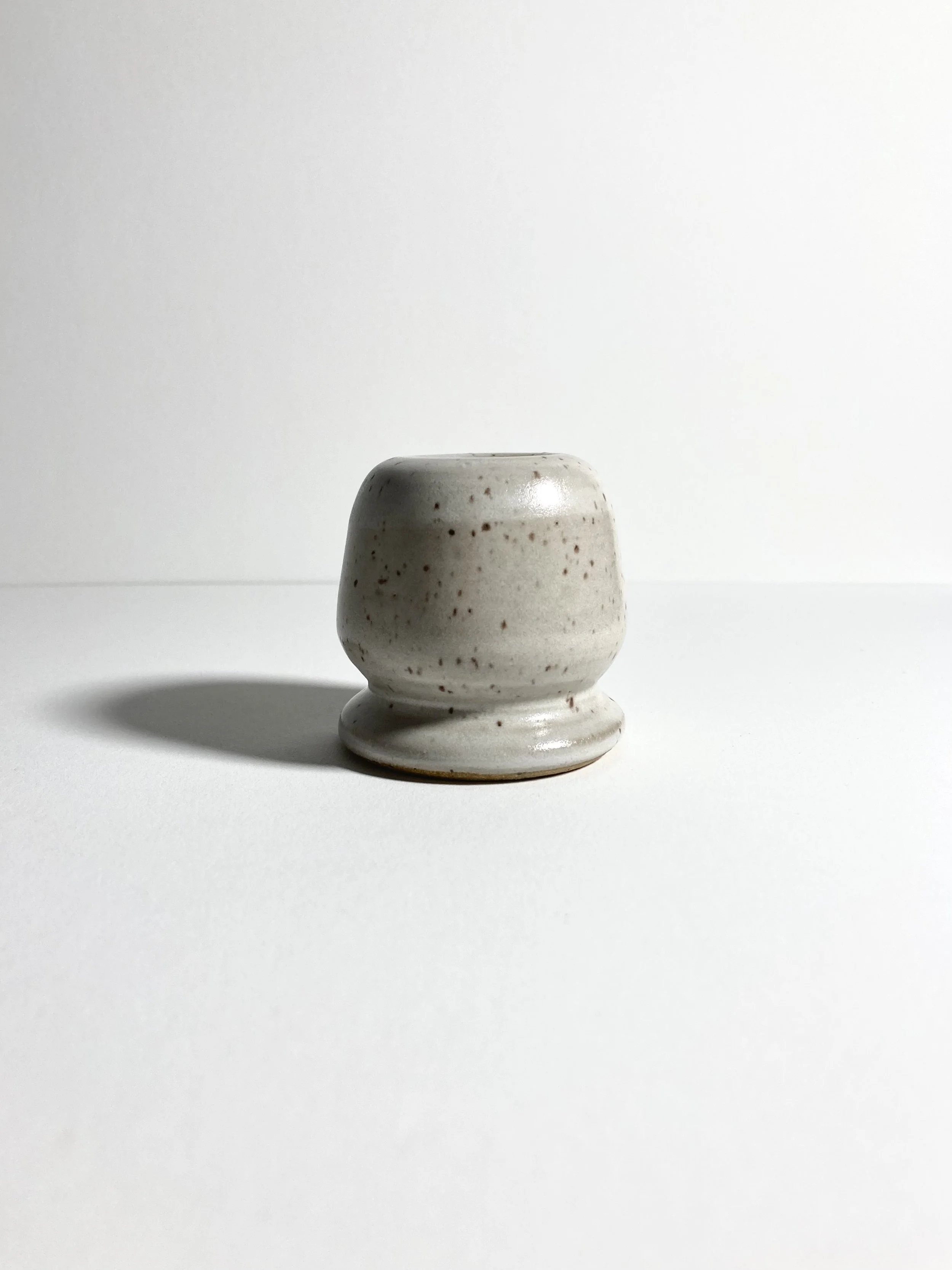 For the serious and not so serious matcha tea drinker. This whisk stand will let your matcha whisk dry, maintaining its shape, while looking good in the process! Beautiful white satin matte glaze over speckled clay. (Whisk not included.)